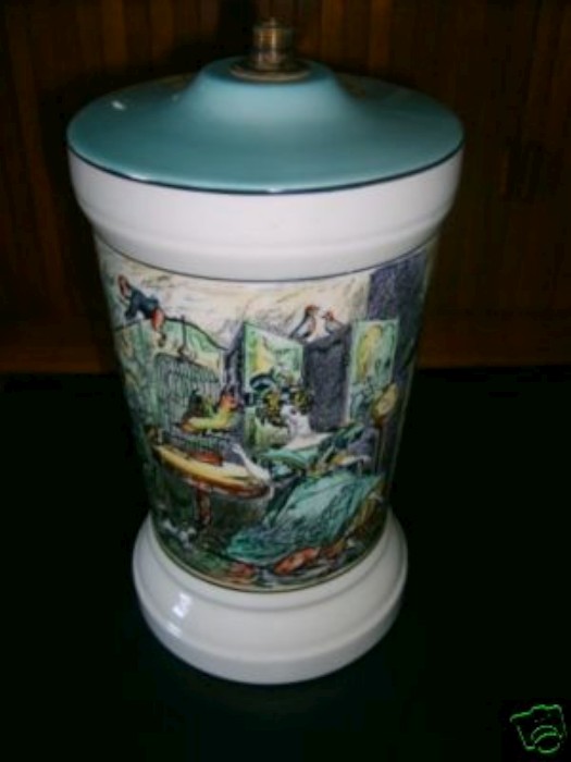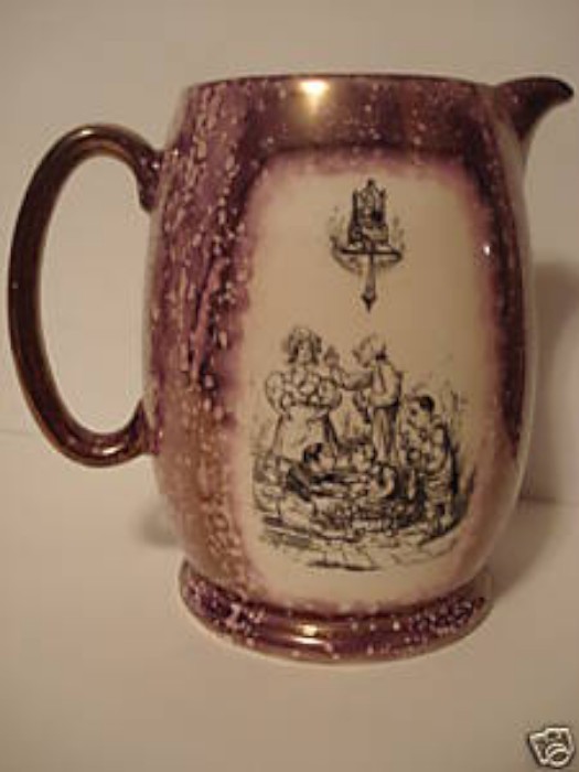 An early lidded box has been recorded which has a Heath print. The box , in pink splashed lustre and carrying the First Galleon backstamp B1, has the print Sayings & Doings No 3(3).Unfortunately, it has no pattern number. A clue to its date may be given by a similar box decorated with pattern 9234 from 1930 and which has a unique backstamp. The conclusion can be drawn that Gray’s Pottery was using Heath prints from as early as the 1930s and as late as the mid-1950s.