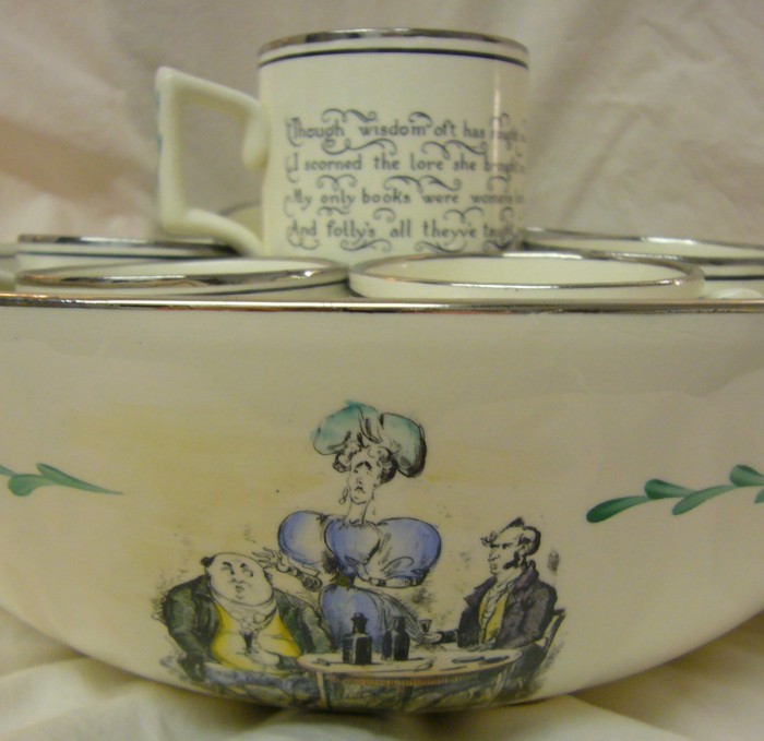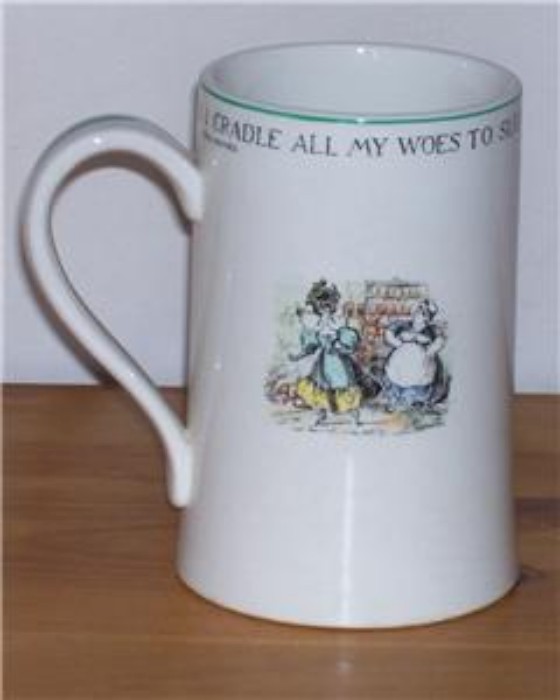 - This is part of a tankard with a Tom Moore verse around the top: “Within this goblet rich and deep, I cradle all my woes to sleep”.