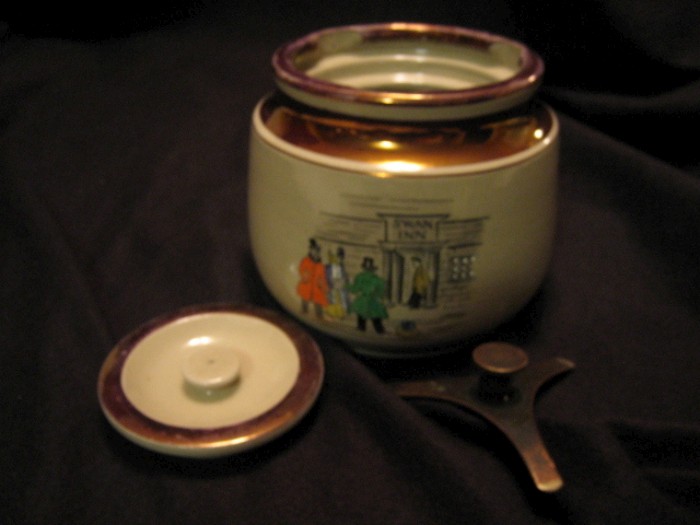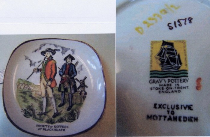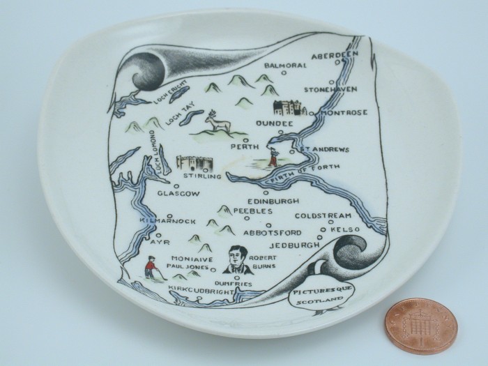 Many Gray’s Pottery designs, notably during the 1950s, used print images which may or may not be enamelled, but which carry the name of a person, place, event etc. The list below is of designs which include some text, most especially as a title or heading. Some of the words may have constituted official pattern names during the life ofGray’s Pottery, but there is no evidence to support this one way or the other.