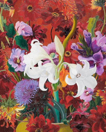 Flowers pictures by Sir Cedric Morris have an estimate of £12,000 to £20,000.