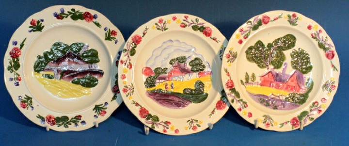 This method involved the engraving of a design on a copper plate, which was then printed onto gummed tissue. The colour paste was worked into the cut areas of the copper plate and wiped from the uncut surfaces, and then printed by passing through rollers. These designs, including edge-patterns which had to be manipulated in sections, were cut out using scissors and applied to the biscuit-fired ware (using a white fabric), itself prepared with a gum solution. The tissue was then floated off in water, leaving the pattern adhering to the plate. This was then dipped in the glaze and returned to the kiln for the glost firing. Blue underglaze transfer became a standard feature of Staffordshire pottery. Spode also used on-glaze transfers for other wares. The well-known Spode blue-and-white dinner services with engraved sporting scenes and Italian views were developed under Josiah Spode the younger, but continued to be reproduced into much later times.