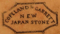 1833 to 1847: the company was known as Copeland and Garrett. Marks appear with this name printed or impressed and often include ‘late Spode’. This means formerly Spode as the name continued to be used because the Spode brand had become so well-known. To the left is an unusual backstamp which includes the name of the pottery body (ie recipe). You may also find pieces which are impressed Spode and then printed Copeland & Garrett. The undecorated pieces were already made and marked Spode prior to the name change in 1833.