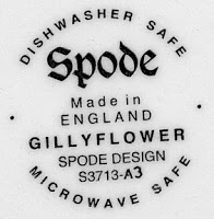 Datemarks after 1963 until 1976 are indicated by a printed letter associated with particular backstamps and are a little complicated. There are several series of letters and a different letter is used to indicate the year depending on whether the body is bone china, fine stone or earthenware. To decipher these you (and I!) would need Robert Copeland’s ‘marks book’ mentioned above.